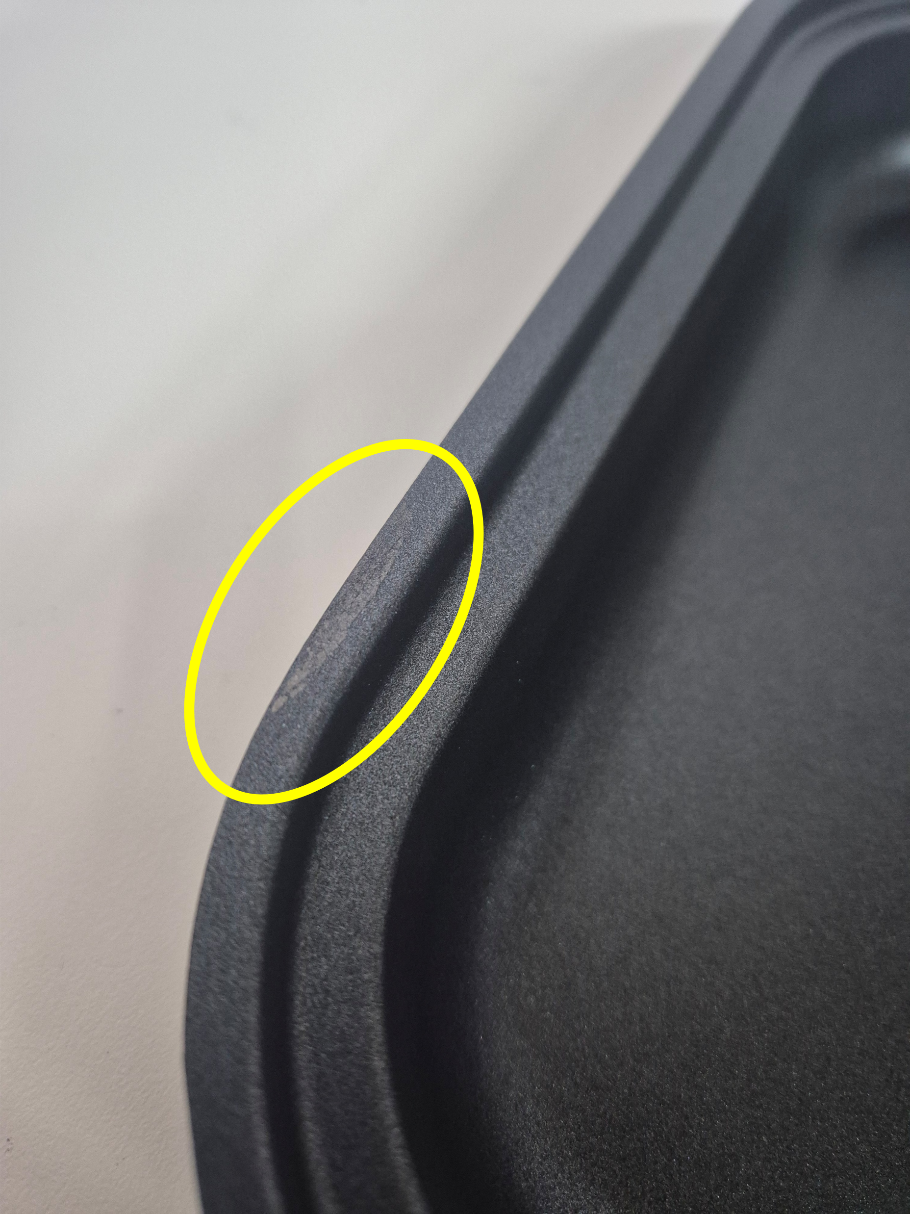 - Side rim of splash guard has a blueish mark